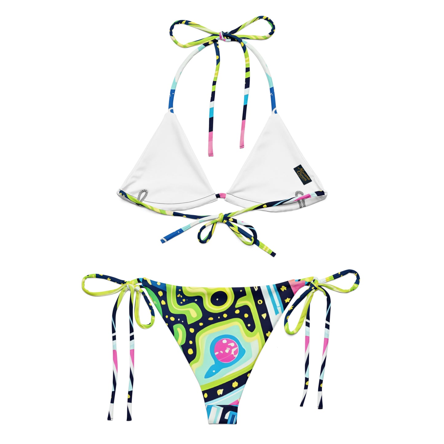 • To make your All-Over Print Recycled String Bikini last longer, thoroughly rinse it off after each use and get rid of any chlorine/salt residue.